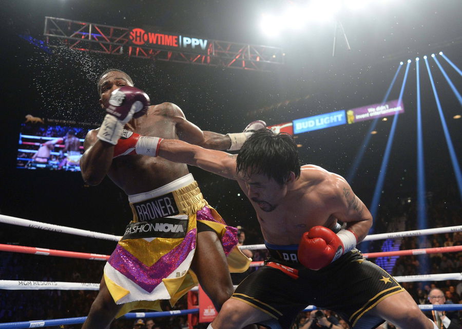 Boxing: Pacquiao vs Broner, Jan 19, 2019 Las Vegas, NV, USA Manny Pacquiao black trunks and Adrien Broner purple/gold trunks box during a WBA welterweight world title boxing match at MGM Grand Garden Arena. Pacquiao won via unanimous decision. Mandatory Credit: Joe Camporeale-USA TODAY Sports, 19.01.2019 22:15:48, 12028779, NPStrans, Manny Pacquiao, MGM Grand Garden Arena, Boxing, Adrien Broner, WBA, TopPic PUBLICATIONxINxGERxSUIxAUTxONLY Copyright: xJoexCamporealex 12028779