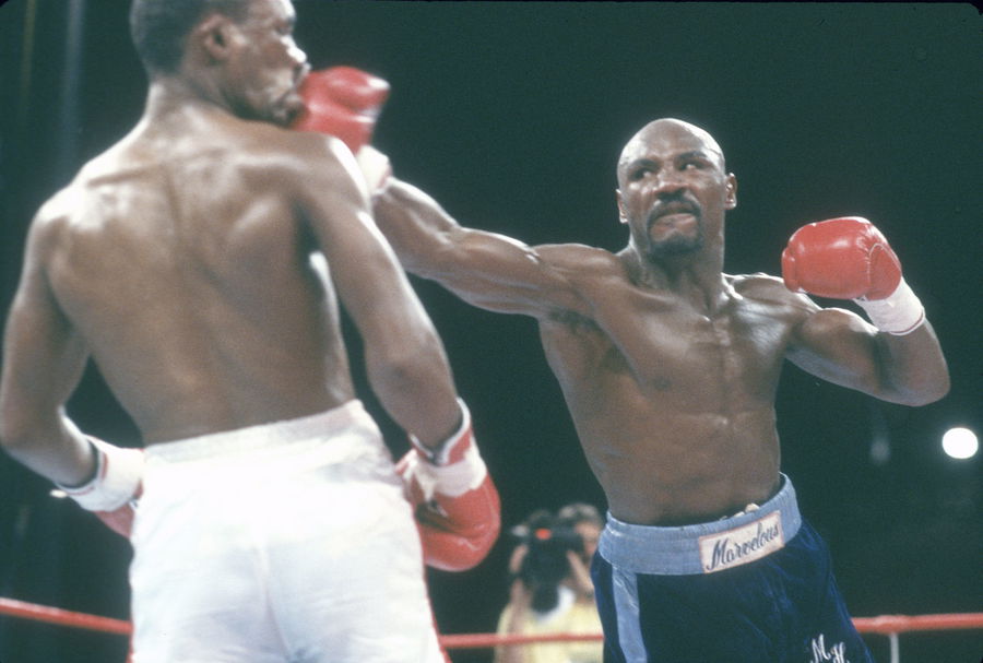 LAS VEGAS, NV – APRIL 6: Sugar Ray Leonard and Marvin Hagler fight for the WBC and Ring Middleweight titles on April 6, 1987 at Caesars Palace in Las Vegas, Nevada. Leonard won the fight in 12 rounds on a split decision. (Photo by Focus on Sport/Getty Images)