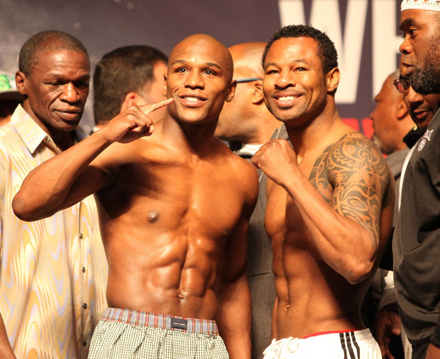 April 30 2010 MGM Grand Garden Arena MGM Grand Resort and Casino Weigh In Shane Mosley Floyd Mayweather Jr. Las Vegas Nevada USA Copyright: xTomxHoganx MayweatherMosleyWeighIn_Hogan16