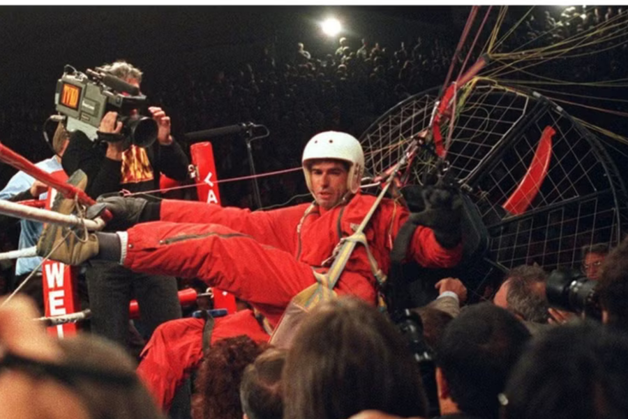 You’d never expect something like this to happen in boxing, right? And who would imagine a parachutist interrupting a heavyweight championship fight? But that’s exactly what went down in November 1993 during the rematch between Riddick Bowe and Evander Holyfield for the IBF title. In the seventh round, a guy named James “The Fan Man” Miller, known for similar shenanigans, had a motorized fan strapped to his back and tried to land it in the ring as part of a publicity stunt.