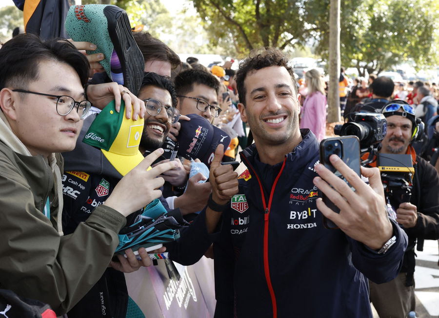 Formula One F1 – Australian Grand Prix – Melbourne Grand Prix Circuit, Melbourne, Australia – March 31, 2023 Red Bull’s Daniel Ricciardo with fans arriving at the Melbourne Grand Prix Circuit REUTERS/Darrian Traynor