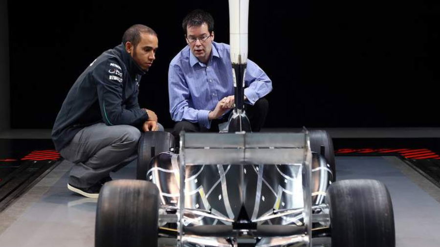 (L-R) Mike Elliott, Lewis Hamilton (Credit: Imago)