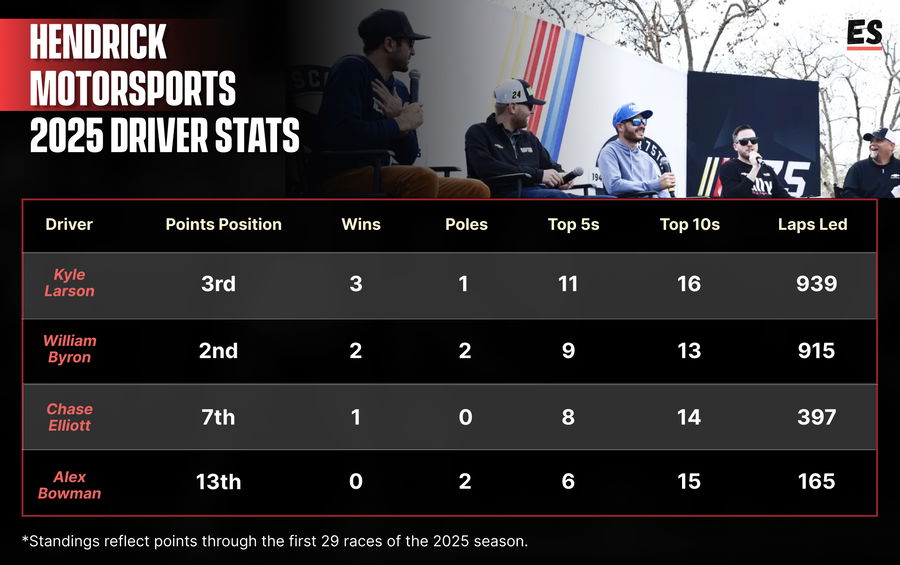 NASCAR has seen some encouraging signs from William Byron this season, who won the Daytona 500 and the 2025 Iowa Corn 350 this year, but Chase Elliott and Alex Bowman have underperformed.