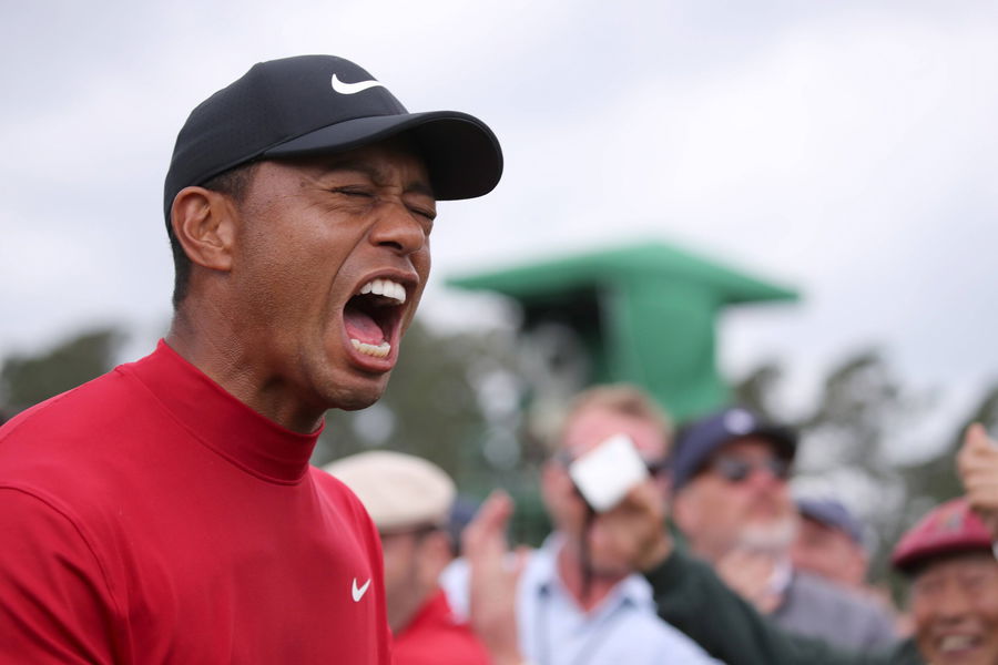 Tiger Woods (USA) celebrates winning on the 18th hole during the final round of the 2019 Masters golf tournament at the Augusta National Golf Club in Augusta, Georgia, United States, on April 14, 2019. Noxthirdxpartyxsales PUBLICATIONxINxGERxSUIxAUTxHUNxONLY (101271201)