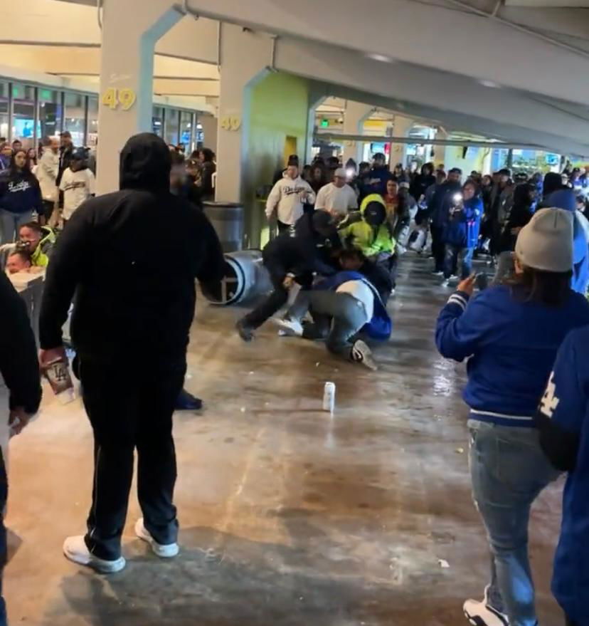 Los Angeles Dodgers fans engage in a brutal brawl at Dodger Stadium