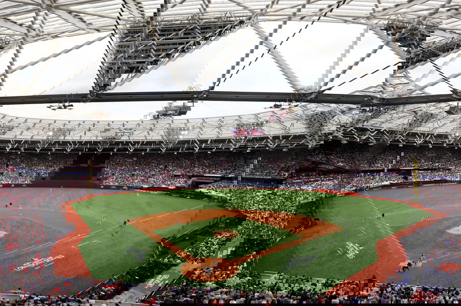 MLB, Baseball Herren, USA London Series-Philadelphia Phillies vs New York Mets US, Mexico & Canada customers only June 9, 2024 London, UNITED KINGDOM A general view of the field before a London Series baseball game between the Philadelphia Phillies and New York Mets at Queen Elizabeth Olympic Park. London United Kingdom, EDITORIAL USE ONLY PUBLICATIONxINxGERxSUIxAUTxONLY Copyright: xMatthewxChildsx 20240609_jla_so6_064
