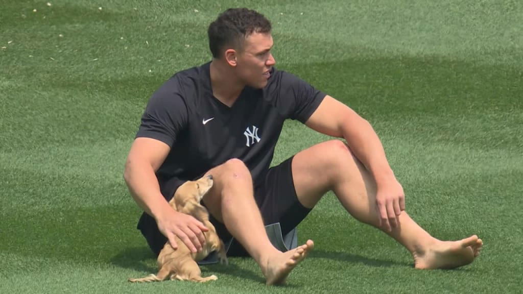 The Judge’s family includes Aaron and his wife Samantha, and their two cute puppies, Penny and Gus. Penny has stolen the internet’s hearts multiple times over the years with her public appearances. In May, Gus made his Yankee Stadium debut, playing around with his Pinstriped Hooman, taking the online world by storm. Now, he’s back on Judge’s social media but this time around, fans aren’t feeling the charm.
