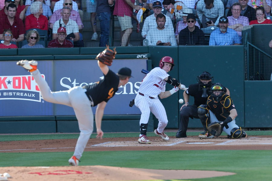 May16, 2025: Charles Davalan (24) of Arkansas looks to put a ball in play while at the plate. Arkansas defeated Tennessee 8-6 in Fayetteville, AR. CSM Fayetteville USA – ZUMAcm9_ 20250516_faf_cm9_018 Copyright: xRicheyxMillerx