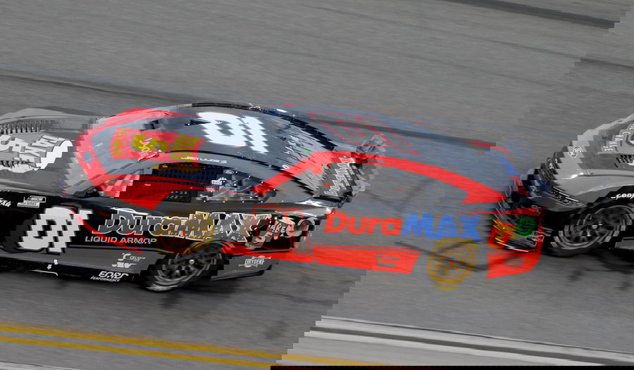 DAYTONA BEACH, FL – FEBRUARY 16: Corey Lajoie 01 Rick Ware Racing Duramax Ford races into turn 4 during the NASCAR, Motorsport, USA Cup Series DAYTONA 500 on February 16, 2025, at Daytona International Speedway in Daytona Beach, FL. Photo by Malcolm Hope/Icon Sportswire AUTO: FEB 16 NASCAR Cup Series DAYTONA 500 EDITORIAL USE ONLY Icon250216033500
