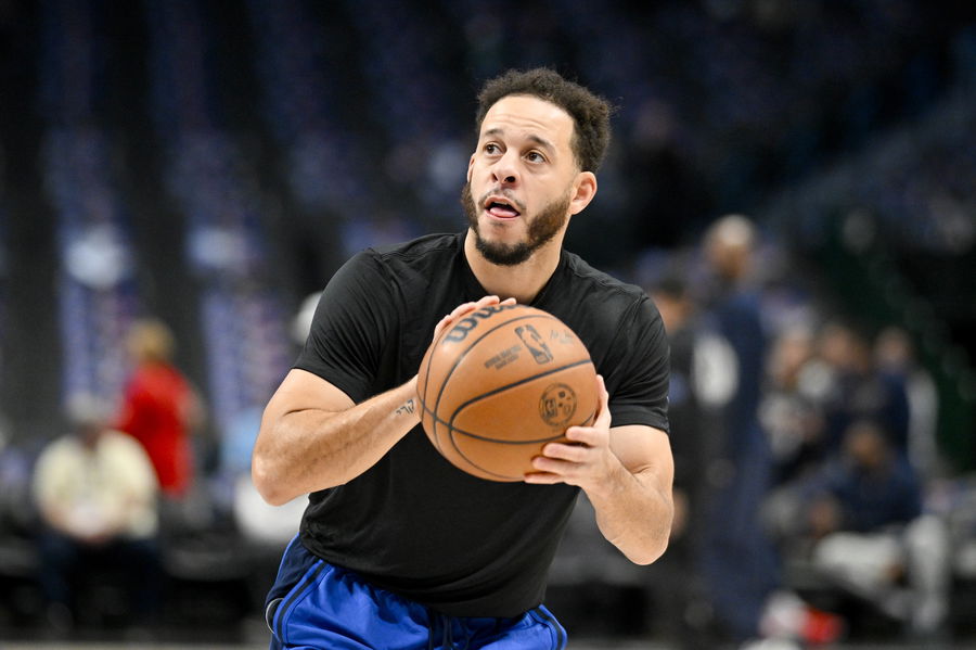 Jan 15, 2024; Dallas, Texas, USA; Dallas Mavericks guard Seth Curry (30) warms up before the game between the Dallas Mavericks and the New Orleans Pelicans at the American Airlines Center. Mandatory Credit: Jerome Miron-USA TODAY Sports