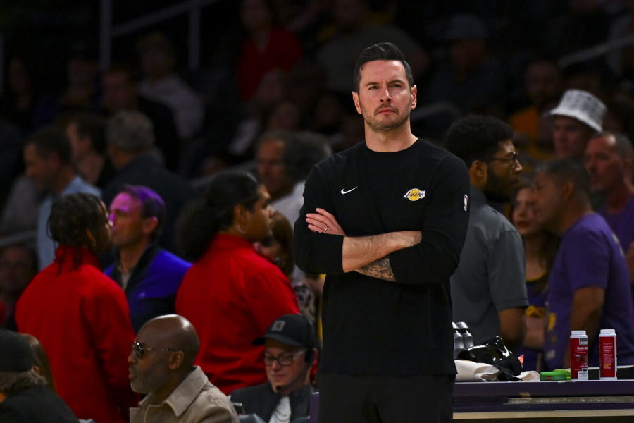Mar 20, 2025; Los Angeles, California, USA; Los Angeles Lakers head coach JJ Redick on the sidelines against the Los Angeles Lakers during the second half at Crypto.com Arena. Mandatory Credit: Jonathan Hui-Imagn Images