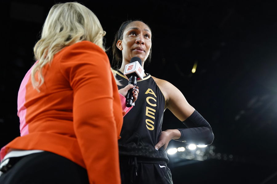 WNBA, Basketball Damen, USA Finals-Connecticut Sun at Las Vegas Aces, Sep 11, 2022 Las Vegas, Nevada, USA Las Vegas Aces forward Aja Wilson 22 during a post game interview after defeating the Connecticut Sun 67-64 in game one of the 2022 WNBA Finals at Michelob Ultra Arena. Mandatory Credit: Lucas Peltier-USA TODAY Sports, 11.09.2022 14:08:06, 19030849, NPStrans, Connecticut Sun, WNBA PUBLICATIONxINxGERxSUIxAUTxONLY Copyright: xLucasxPeltierx 19030849