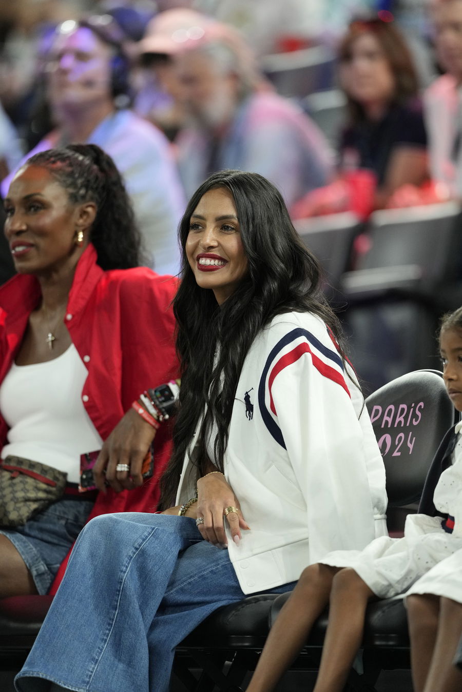 Aug 11, 2024; Paris, France; Vanessa Bryant looks on before the women’s gold medal game between France and the United States during the Paris 2024 Olympic Summer Games at Accor Arena. Mandatory Credit: Kyle Terada-USA TODAY Sports