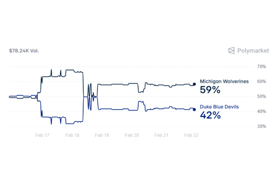 As things stand, according to Polymarket, Michigan seems to be the team that looks to have the upper hand against Duke. Michigan has a 59% chance of winning, while Duke has 42%. So, Duke is undoubtedly the underdog heading into this game.