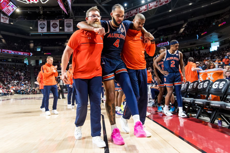 Six minutes into the second half, Broome leapt to contest a layup by Murray-Boyles. He landed awkwardly on his teammate Chaney Johnson’s foot, with all his body weight seemingly on the turned ankle. Broome was quickly escorted to the locker room and did not return for the remainder of the game.