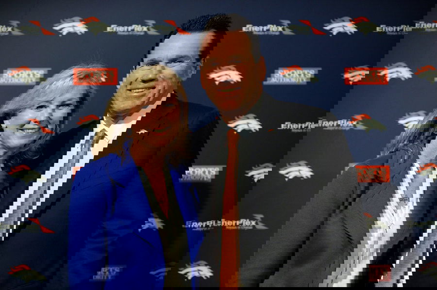 NFL, American Football Herren, USA Denver Broncos-Gary Kubiak press conference, PK, Pressekonferenz Jan 20, 2015 Englewood, CO, USA Denver Broncos head coach Gary Kubiak and his wife Rhonda Kubiak pose for a photo following the press conference at the Broncos training facility. Englewood The Paul D. Bowlen Memorial Bron CO USA, EDITORIAL USE ONLY PUBLICATIONxINxGERxSUIxAUTxONLY Copyright: xRonxChenoyx 8339143