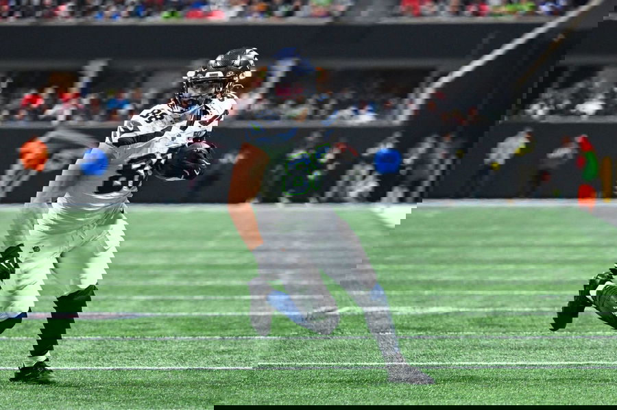 ATLANTA, GA – DECEMBER 07: Seattle tight end AJ Barner 88 runs with the ball after a reception during the NFL, American Football Herren, USA game between the Seattle Seahawks and the Atlanta Falcons on December 7th, 2025 at Mercedes-Benz Stadium in Atlanta, GA. Photo by Rich von Biberstein/Icon Sportswire NFL: DEC 07 Seahawks at Falcons EDITORIAL USE ONLY Icon251207064