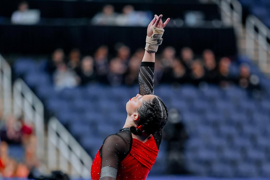 And the accolades didn’t stop there. For the second year in a row, she earned a nomination for the prestigious AAI Award, given to the top senior gymnasts in the country — a symbol of excellence both on and off the mat. With 14 all-conference honors and nine all-conference championship nods in her career, she’s not just a standout — she’s a legend in red and white.