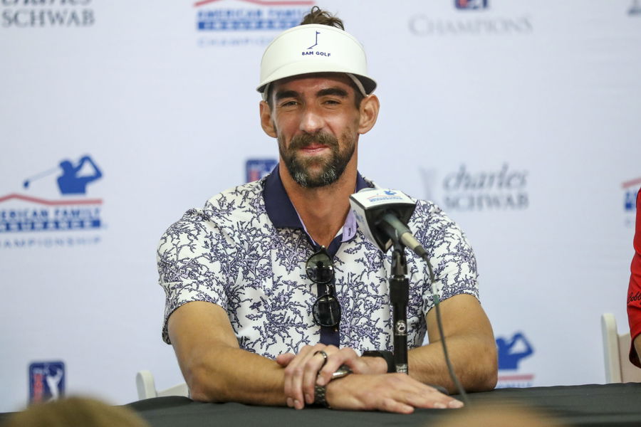MADISON, WI – JUNE 10: Michael Phelps prior to the start of the celebrity foursome during the American Family Insurance Championship Champions Tour golf tournament on June 10, 2023 at University Ridge Golf Course in Madison, WI. (Photo by Lawrence Iles/Icon Sportswire via Getty Images)