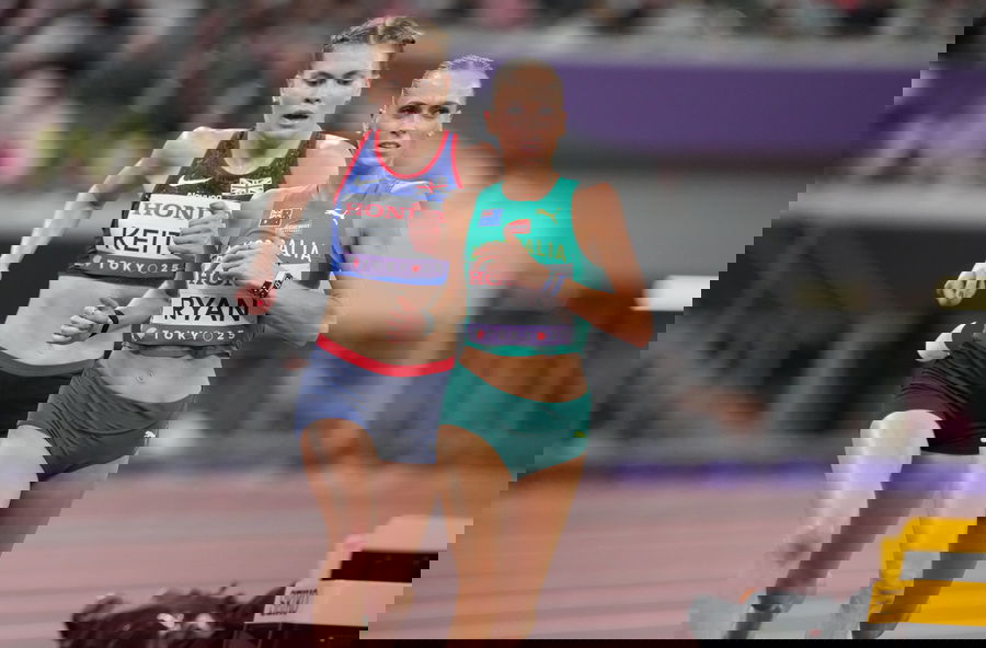 Track & Field: World Athletics Championships-Evening Session Sep 13, 2025 Tokyo, Japan Megan Keith GBR and Lauren Ryan AUS run in the womens 10,000 meters during the World Athletics Championships at National Stadium. Tokyo National Stadium Japan, EDITORIAL USE ONLY PUBLICATIONxINxGERxSUIxAUTxONLY Copyright: xKirbyxLeex 20250913_jhp_al2_0535