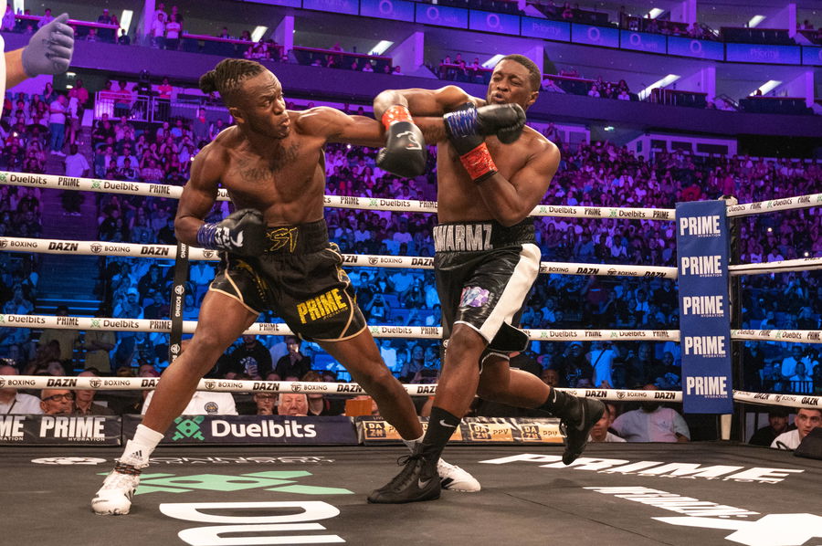 MF & DAZN SERIES 001 – Fight Night Youtube personality KSI and rapper Swarmz during their Two Fights in One Night cruiserweight boxing bout. London The O2 UK Copyright: xJohnxBarryx JB2_5024