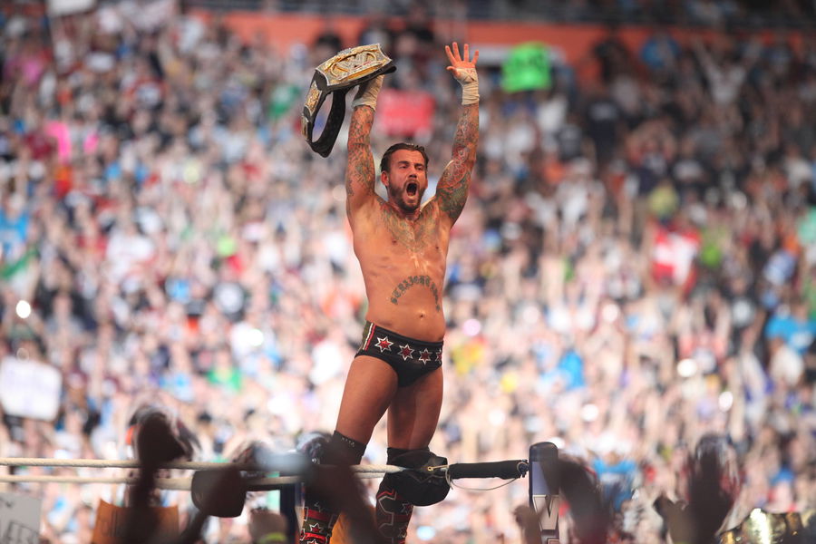 April 1, 2012 – Miami, Florida, USA – WWE wrestler CM PUNK (champion) at World Wrestling Entertainment event Wrestlemania 28 in Miami, Florida. Their WWE Title match at Extreme Rules is advertised for the May 13th show in Rochester. WWE 2012 – Wrestlemania 28 Jericho vs CM Punk – ZUMAr72