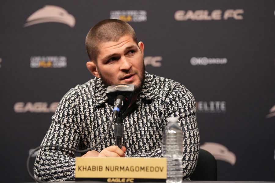January 27, 2022, MIAMI, FL, Miami, Florida, United States: MIAMI, FL- JANUARY 27: Khabib Nurmagomedov speaks with the press during the Eagle FC 44 – Spong vs Kharitonov event at FLX Cast Arena on January 27, 2022 in MIAMI, FL, United States. MIAMI, FL United States – ZUMAp175 20220127_zsa_p175_049 Copyright: xLouisxGrassex