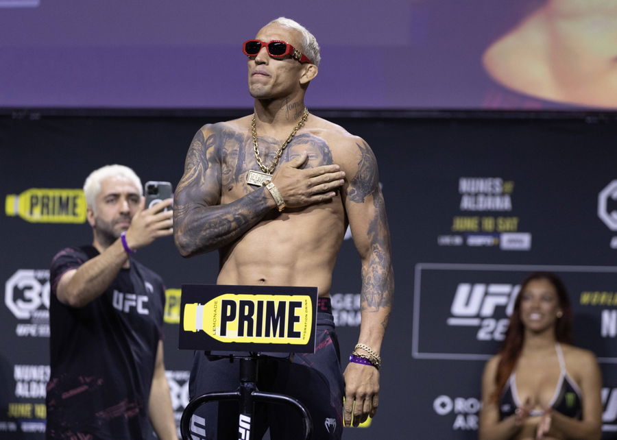 June 9, 2023, Vancouver, British Columbia, Canada: CHARLES OLIVEIRA of Brazil poses on the scale during the UFC 289 official weigh-in at the Westin Bayshore hotel on June 09, 2023 in Vancouver, British Columbia, Canada. Vancouver Canada – ZUMAc132 20230609_zap_c132_034 Copyright: xAndrewxChinx