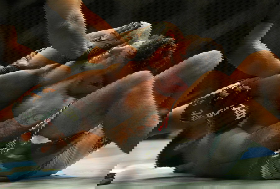 Frank Mir seemed one punch away from being slept by Antonio ‘Minotauro’ Nogueira in their UFC 140 rematch in 2011. The former heavyweight champion was pushed against the cage by the Brazilian, who proceeded to hit him with a series of vicious elbows and knees. A clean hard right landed for ‘Minotauro’ soon after and a groggy Mir staggered to the canvas. Now it was just a matter of finishing Mir off, who was being hammer-fisted by Nogueira. And to everyone’s surprise, the American submission machine wasn’t even covering up.