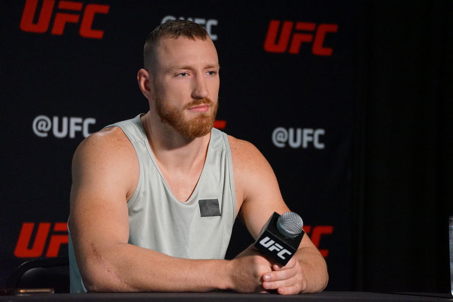 LAS VEGAS, NV – SEPTEMBER 14: Joe Pyfer speaks to the media during the UFC Vegas 60 media day on September 14, 2022, at the UFC APEX in Las Vegas, NV. Photo by Amy Kaplan/Icon Sportswire MMA: SEP 14 UFC Vegas 60 Icon22091460460