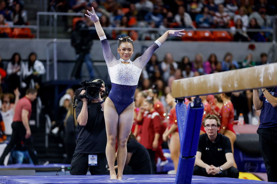 Sunisa Lee is a trusted Auburn through and through. The 2020 Olympic all-around champion must have been elated after Auburn gymnastics’ recent win against Alabama, with a season-high score of 197.725. However, apart from being true to her college, she is a thorough sportsperson. Therefore, she did not miss cheering a worthy performance, even if that came from a rival camp.