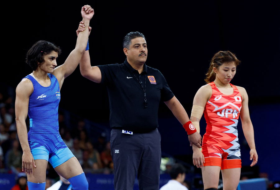 Unfortunately in the quarterfinals of the Paris Olympics, the defending champion’s 82-0 run was broken by Vinesh. The formerly unbeatable Susaki had beaten many world champions with her intelligent, slick and incredibly fast game. But not this time with Vinesh as her opponent. As the laser-focused Vinesh progressed to the semi-finals, Yui was left ruminating over her disheartening defeat.