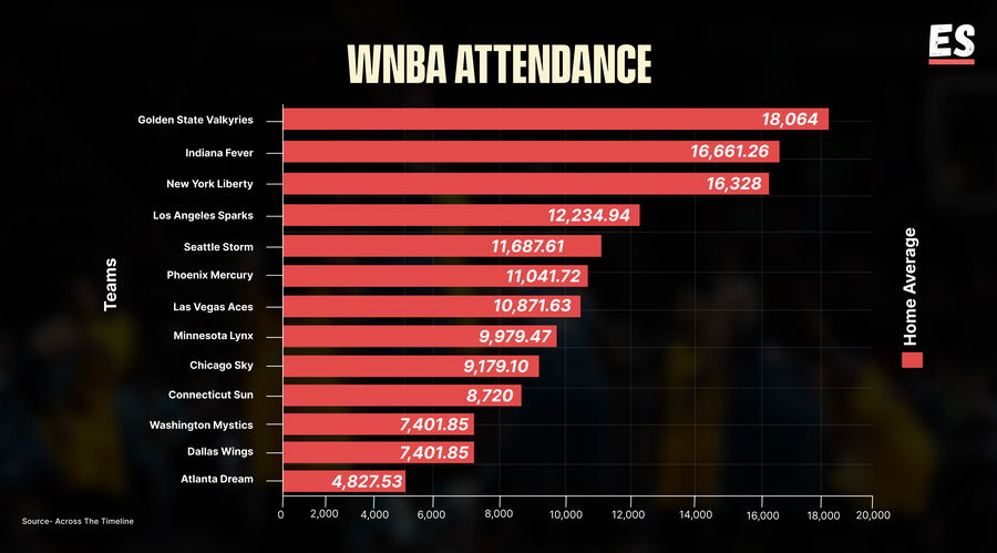 The Valkyries were the 13th team to join the league, and 2025 marked their very first season. So, the excitement was naturally off the charts. And let’s not forget that they play at the Chase Center, home of the Warriors and the 4th biggest arena in the W right now. So yeah, the attendance numbers were always going to get a major boost!
