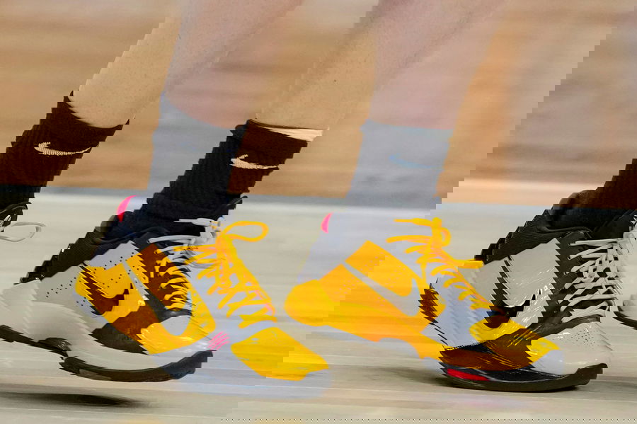 NCAA, College League, USA Womens Basketball: Final Four National Semifinal-Iowa Practice Apr 4, 2024 Cleveland, OH, USA The Nike Kobe 5 Protro Bruce Lee shoes worn by Iowa Hawkeyes guard Caitlin Clark 22 during practice at Rocket Mortgage FieldHouse. Cleveland Rocket Mortgage FieldHouse OH USA, EDITORIAL USE ONLY PUBLICATIONxINxGERxSUIxAUTxONLY Copyright: xKirbyxLeex 20240404_nts_ al2_0067