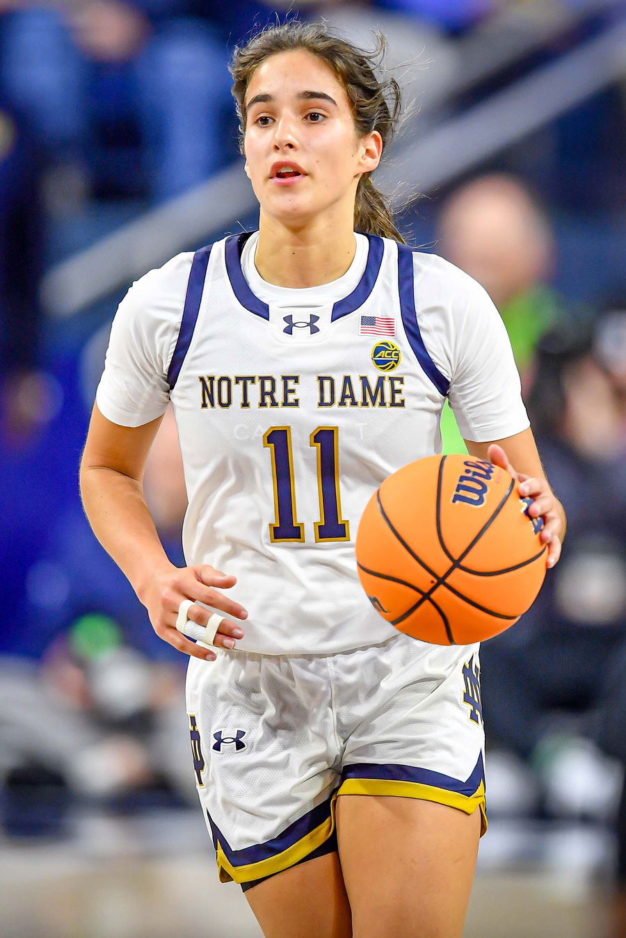 Notre Dame Fighting Irish guard Sonia Citron (11) dribbles in the first half Monday, Oct. 30, 2023, at the Purcell Pavilion.