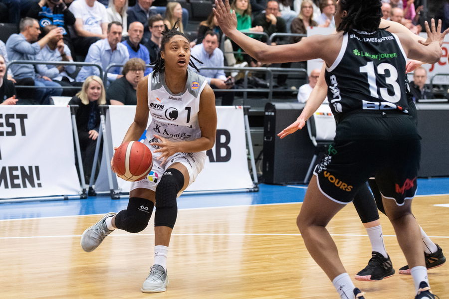 220424 Norrköpings Jaelyn Brown under final tre i damernas SBL mellan Lulea och Norrköping den 24 april 2022 i Lulea. *** 220424 Norrköpings Jaelyn Brown during final three in the ladies SBL between Lulea and Norrköping on April 24, 2022 in Lulea, PUBLICATIONxNOTxINxSWExNORxAUT Copyright: SIMONxELIASSON BB220424SE065
