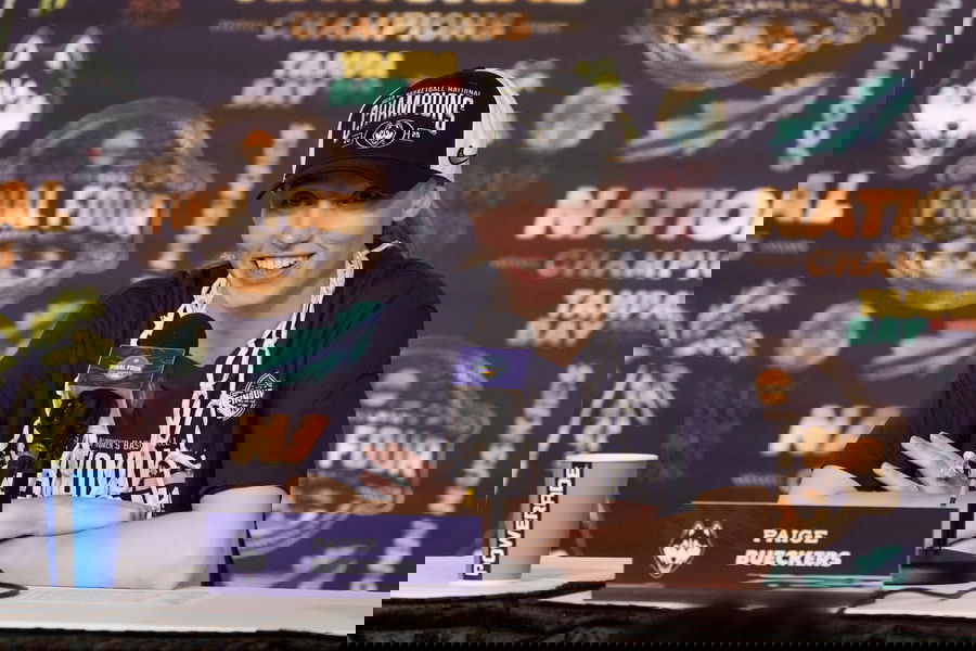 NCAA, College League, USA Womens Basketball: Final Four National Championship Apr 6, 2025 Tampa, FL, USA Connecticut Huskies guard Paige Bueckers 5 speaks to the media after the national championship of the women s 2025 NCAA tournament against the South Carolina Gamecocks at Amalie Arena. Tampa Amalie Arena FL USA, EDITORIAL USE ONLY PUBLICATIONxINxGERxSUIxAUTxONLY Copyright: xKirbyxLeex 20250406_hlf_al2_0261